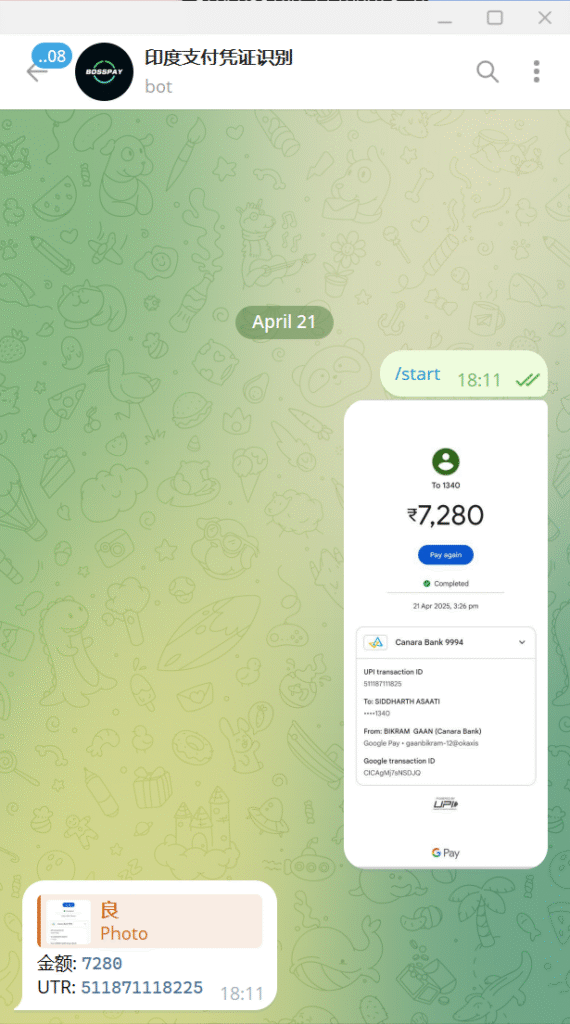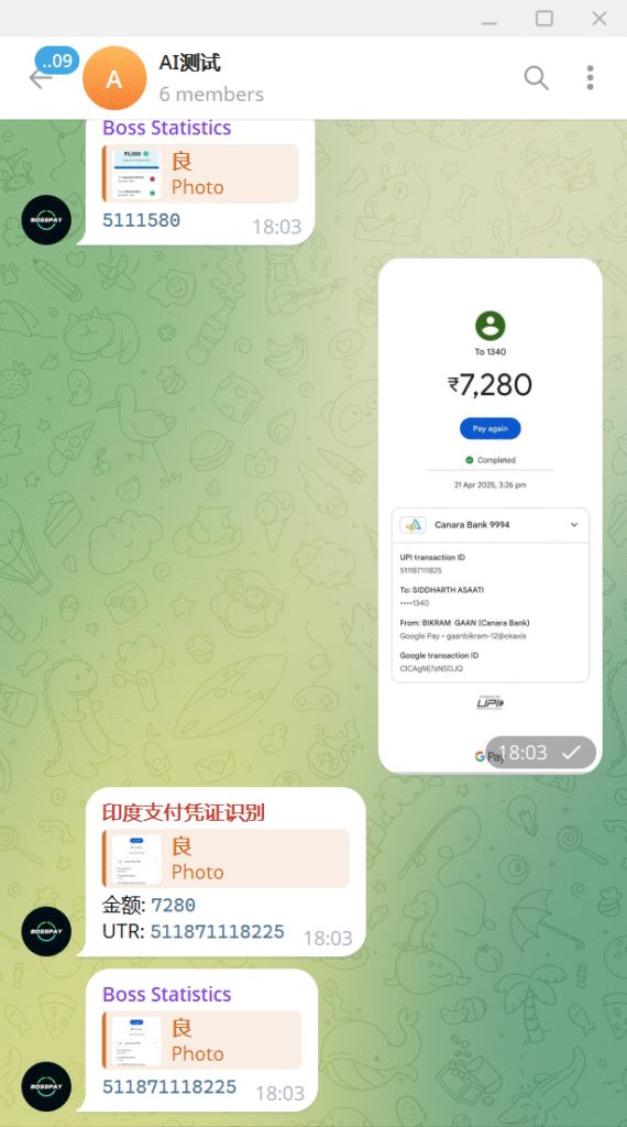 添加机器人到你的群组或者私人信息,在你发送照片会自动识别并且返回UTR和金额(如果存在)。需要商业版API接口可联系我们!