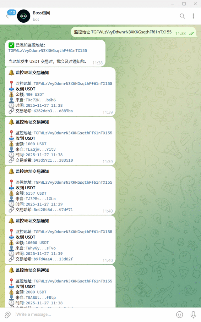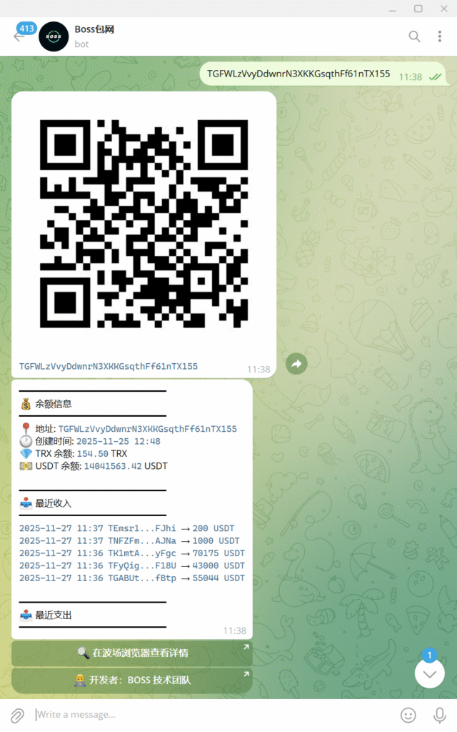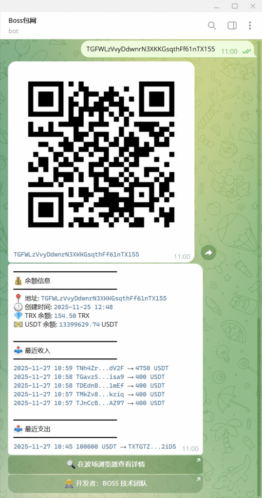 1. 检测到消息中包含 TRC20 USDT 地址时,自动查询该地址的余额和交易信息